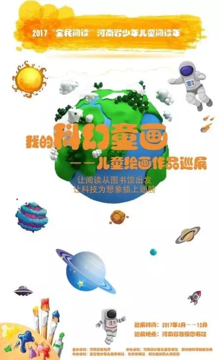 “我的科幻童话”—— 儿童绘画作品巡展由河南省文化厅主办,河南省少年儿童图书馆和郑州市科协共同承办,将展出近两年在“河南省青少年科技创新大赛——科学幻想绘画”获得一等奖的作品共66幅,同时展出的还有科普图片等。