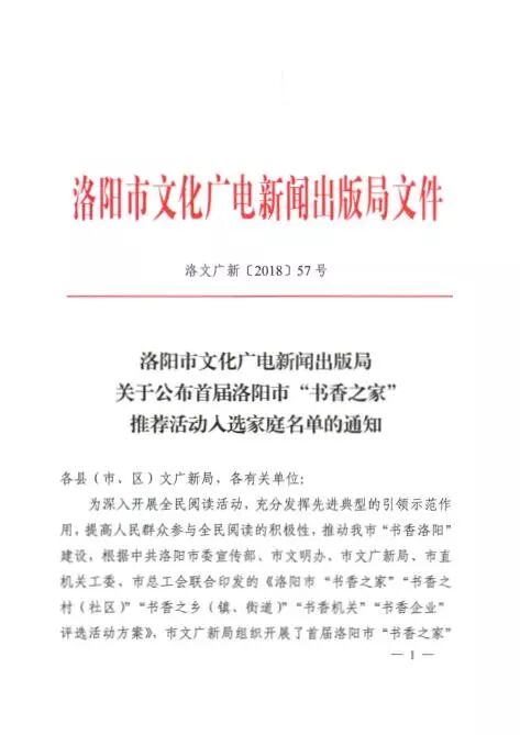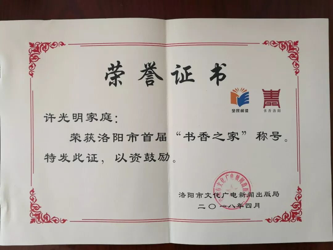 首届洛阳市“书香之家” 孟津获奖名单徐涛家庭 许光明家庭让我们一起祝贺他们。“耕读传家,诗书济世”。自古以来,家庭的读书传统就一直绵延不绝,一代又一代的成大器者无不是早期受到了家庭读书氛围的熏陶,最终在一缕书香的陪伴下,开始了经国济世的非凡人生。家庭是社会的细胞,千百年来,唯有氤氲在家庭里的书香,才能为“钟鸣鼎食之家”开启“诗书簪缨之族”之旅。每一个书香家庭,都是组成全民阅读的一个读书细胞,他们正是以榜样的力量向社会传递出爱的火种,让更多的家庭“见贤思齐”。