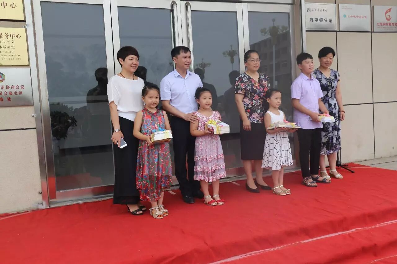 仪式上,市文广新局副局长林春芳,市少儿图书馆馆长闫朝霞,县文广新局局长卫浩洁,镇党委书记王旭升出席开馆仪式,为该馆揭牌并讲话。来自镇域的小读者代表分别以精彩的朗诵和讲故事表演,诠释了他们对书籍的无比热爱;最后还把一本本满载知识的书籍赠给可爱的孩子们。