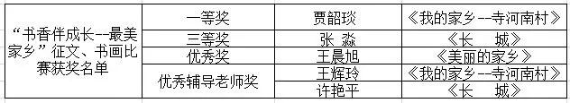 “书香伴成长--最美家乡”征文、书画比赛获奖名单