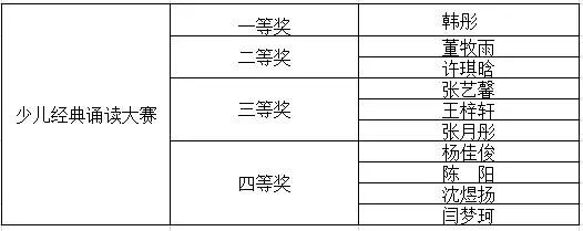 少儿经典诵读大赛获奖名单